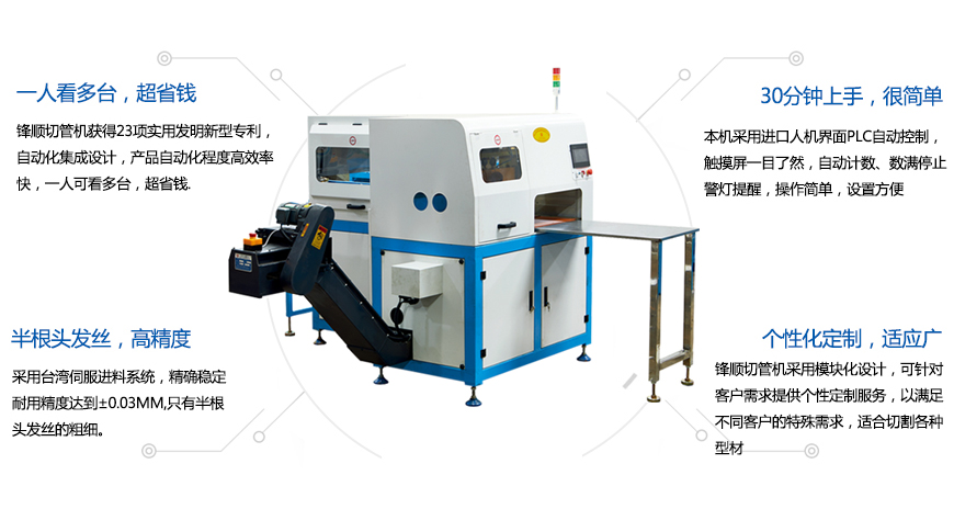 佛山鋒順機械科技有限公司是一家從事自動切管機、全自動切鋁機、鋁型材自動切割機、自動彎管機、不銹鋼自動切割機、全自動切管機等.將設(shè)計研發(fā)、生產(chǎn)制造與銷售服務(wù)融為一體,管材加工生產(chǎn)線方案提供商。咨詢熱線:0757-85611348